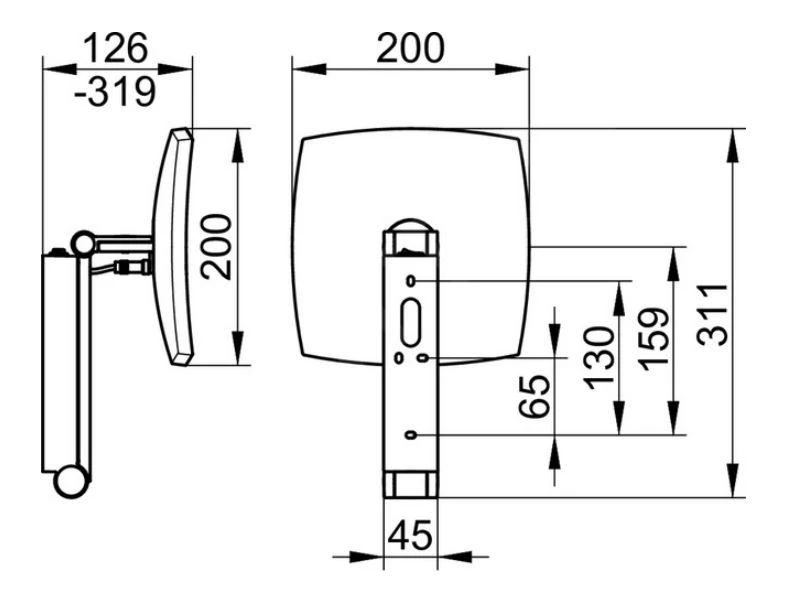 - afmetingen 200 x 311 x 126-319 mm (bxhxd)