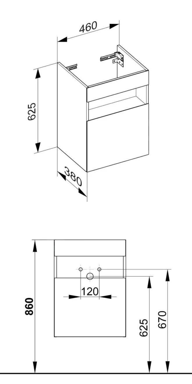 Wastafelonderkast, rechter variant, inclusief sifon