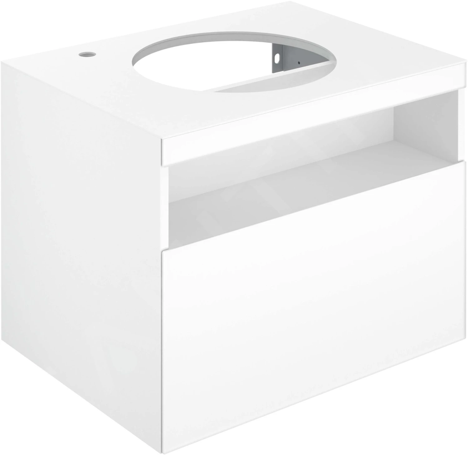 Kast onder ronde wastafel, gat voor wastafel en kraan aan de linkerkant