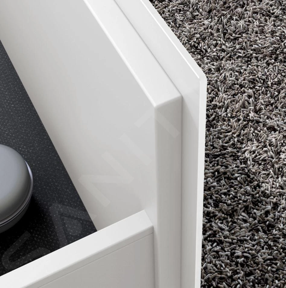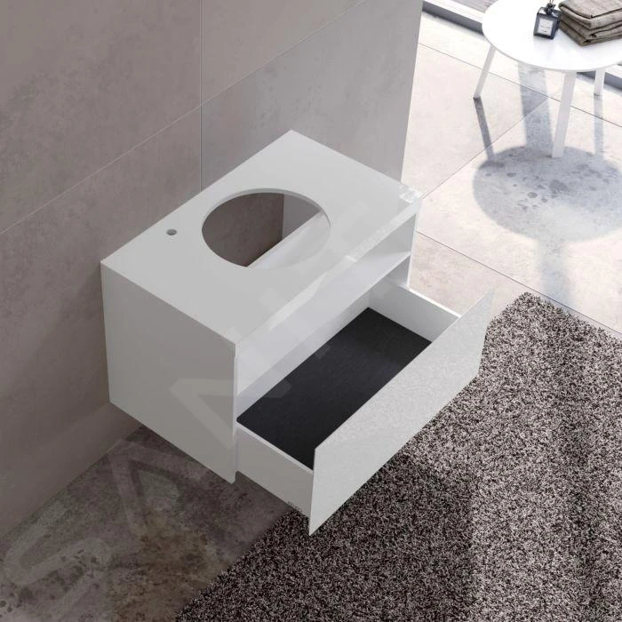 Kast onder ronde wastafel, gat voor wastafel en kraan aan de linkerkant, inclusief sifon