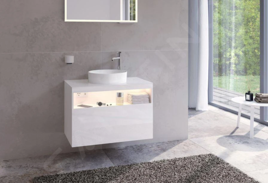 Wastafel en kraan niet inbegrepen.