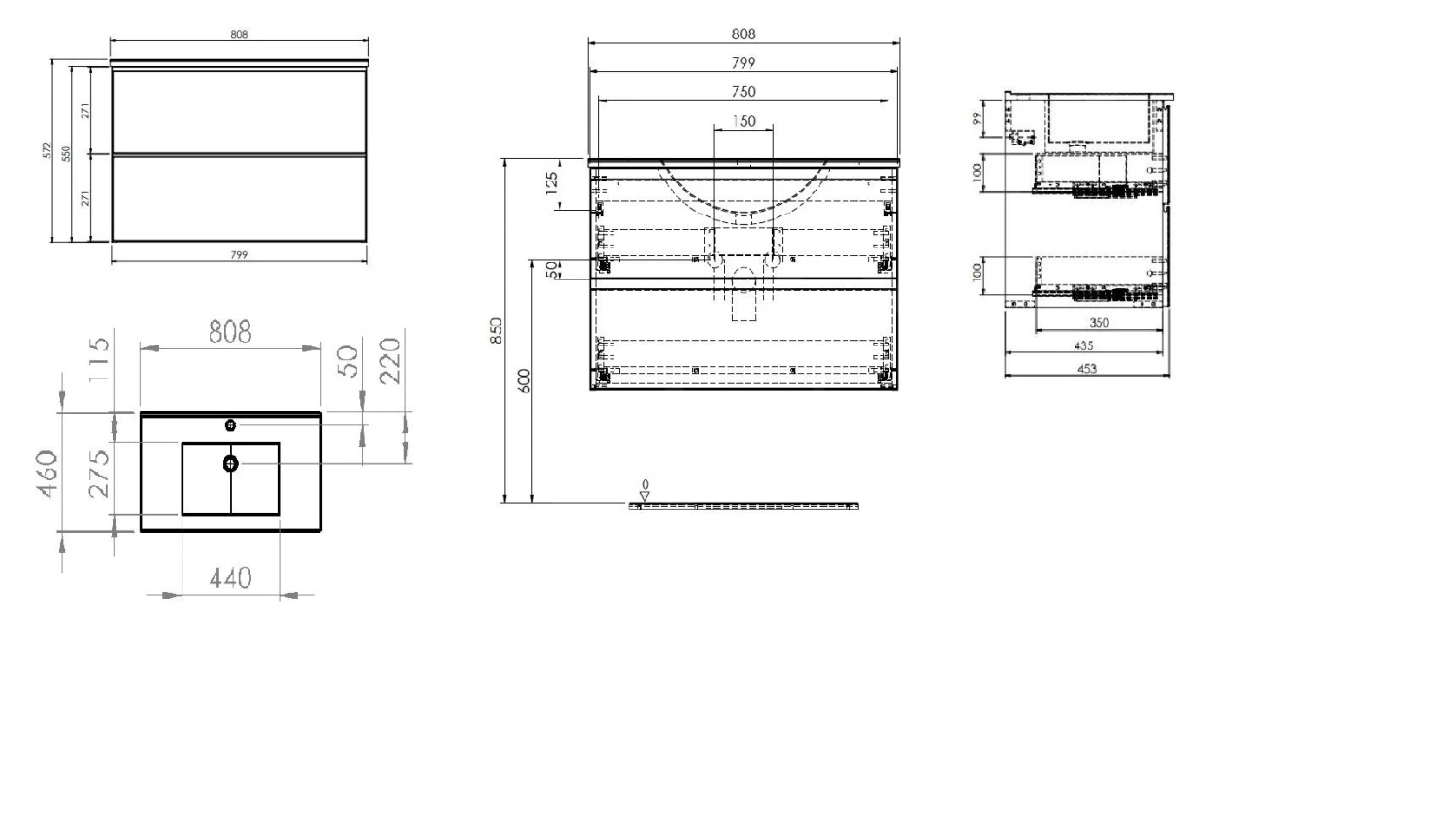 - afmetingen kast: breedte 800 mm, diepte 460 mm