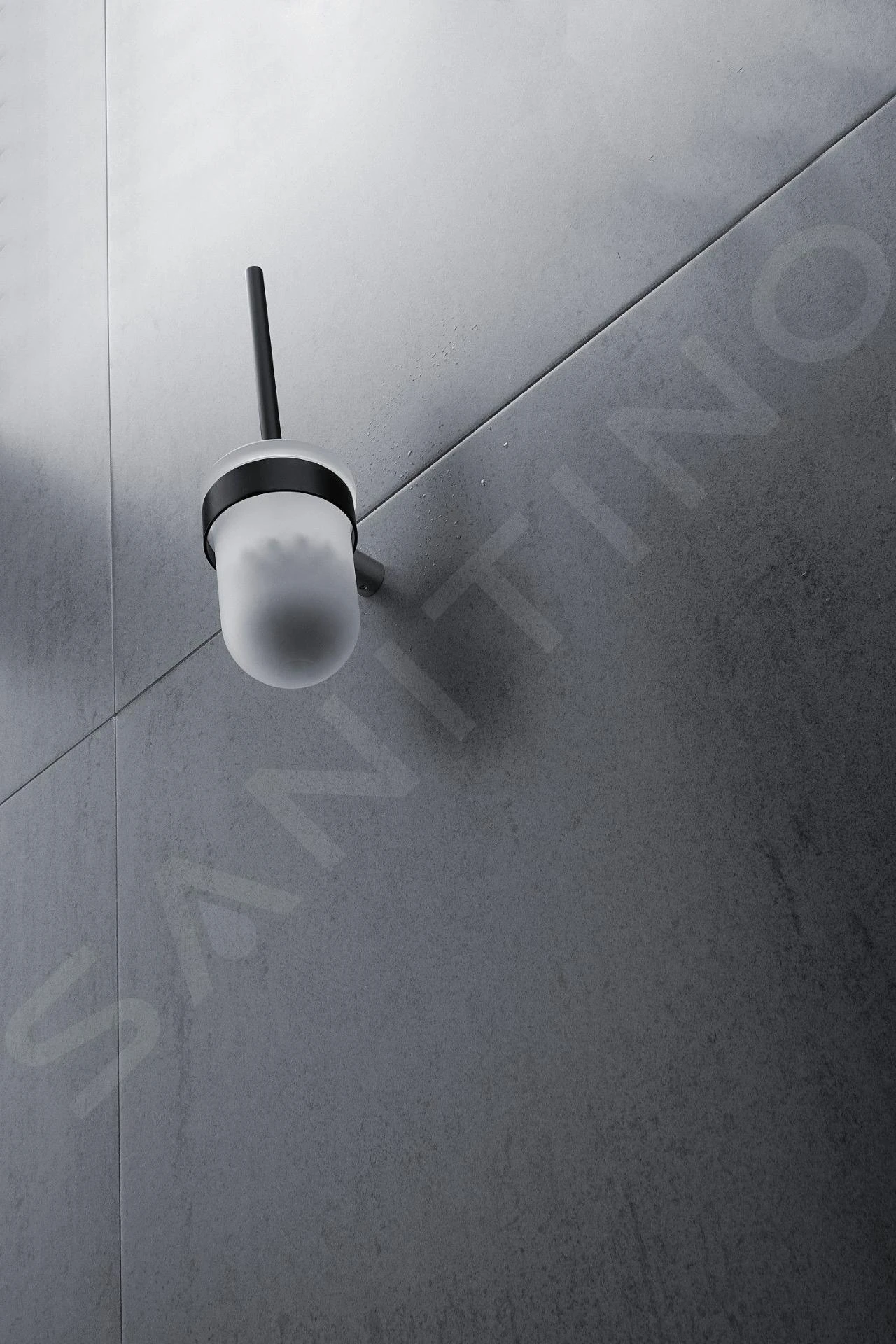 Toiletborstel voor wandmontage met lage borstelhouder van glas