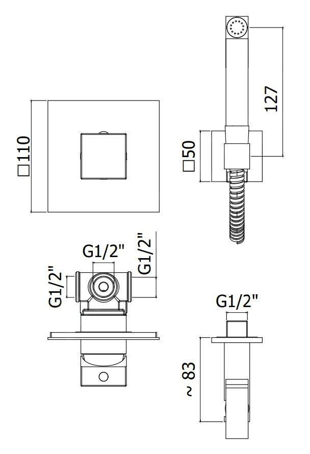 - rechthoekige afdekplaat met handdouchehouder, afmetingen 50×50 mm