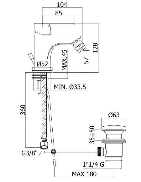 Staande eengreeps bidetkraan met waste