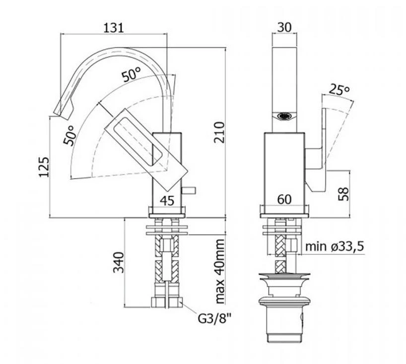 - kraanhoogte 210 mm