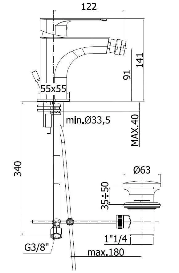Staande eengreeps bidetkraan met waste