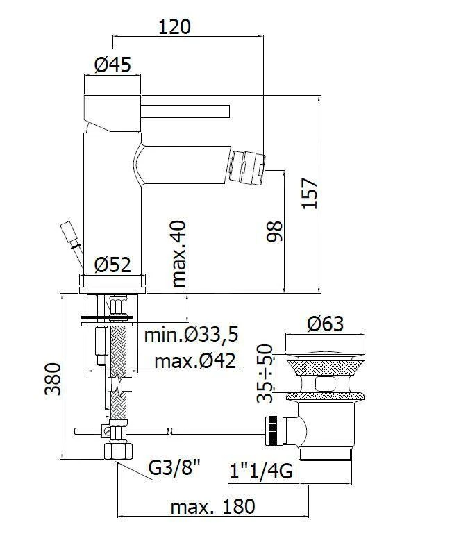 - set van 2 roestvrijstalen slangen G 3/8″ voor aansluiting op hoekstopkranen met een lengte van 45 cm