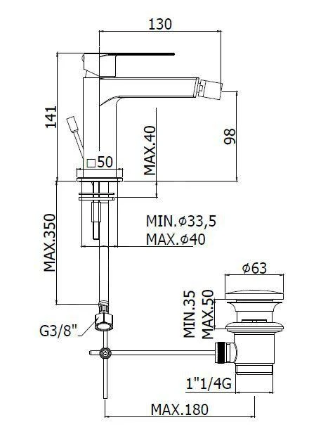 - lengte uitloop 130 mm, comfortzone 98 mm