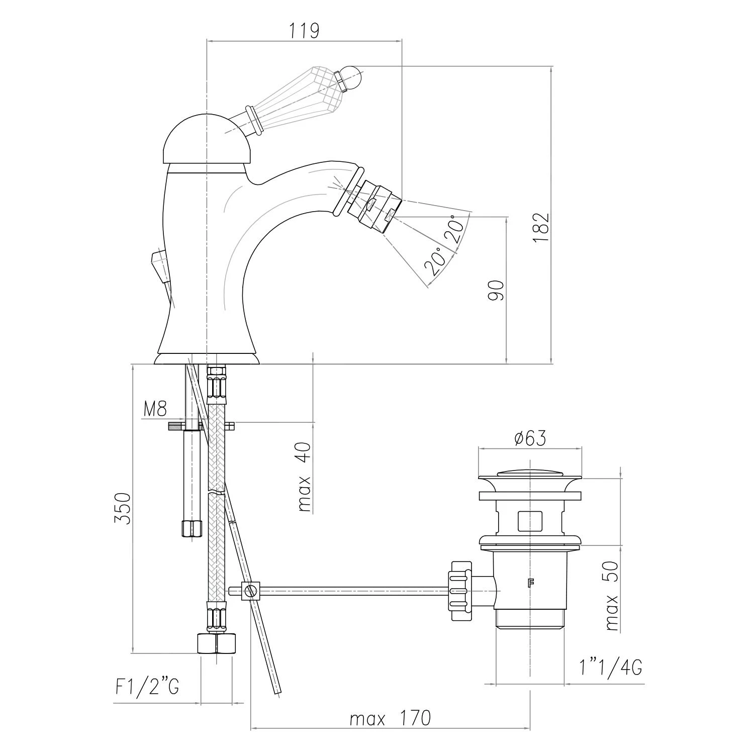 - materiaal: messing, kleur chroom