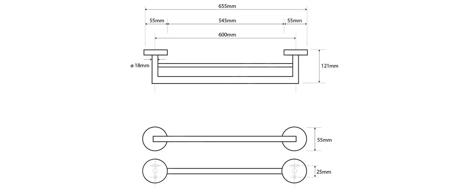 X-ROUND dubbele handdoekhouder 650 mm, chroom