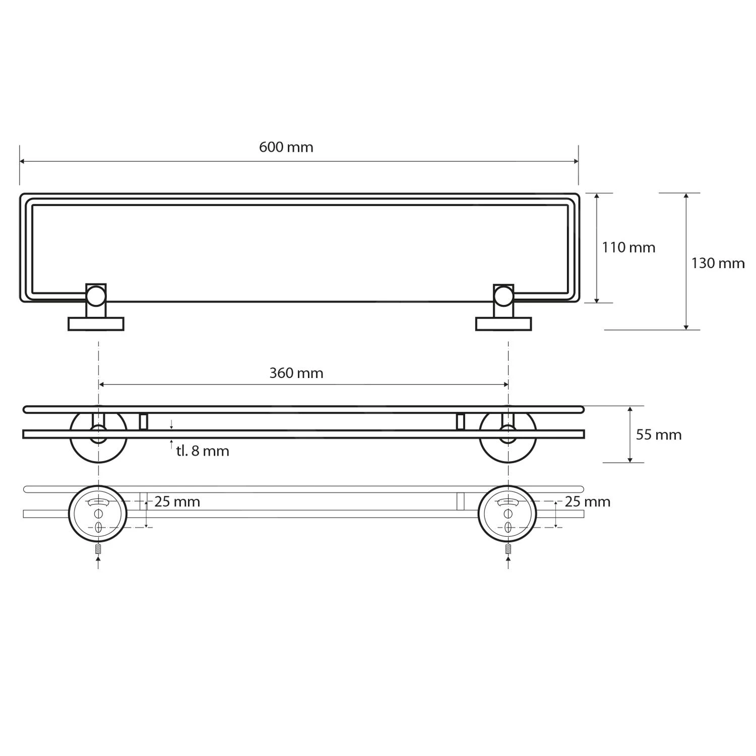- afmetingen 600 x 55 x 130 mm
