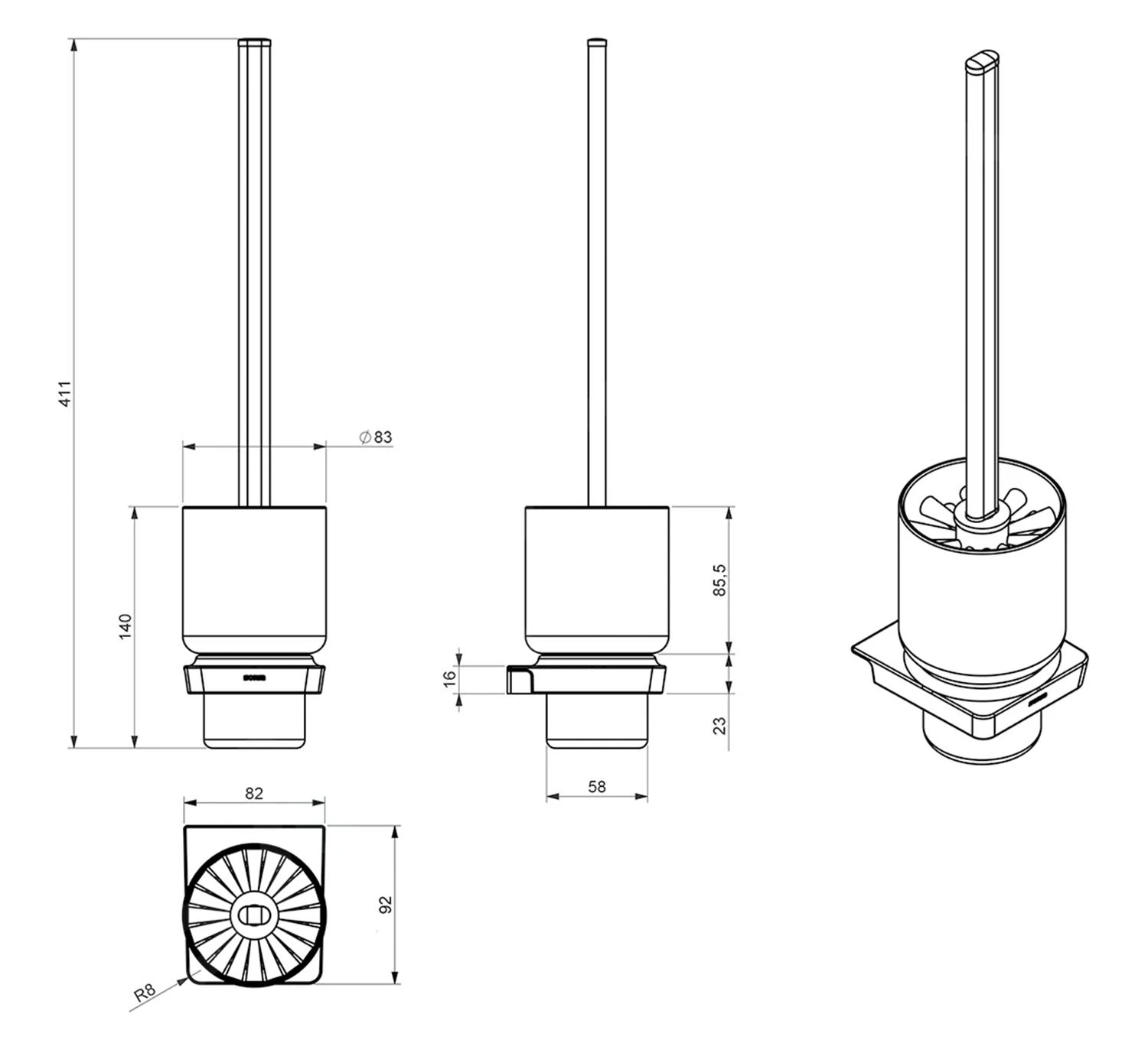 Wandgemonteerde closetborstel