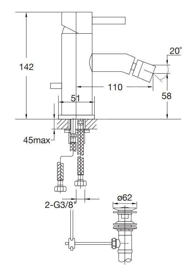 Staande bidetkraan met waste