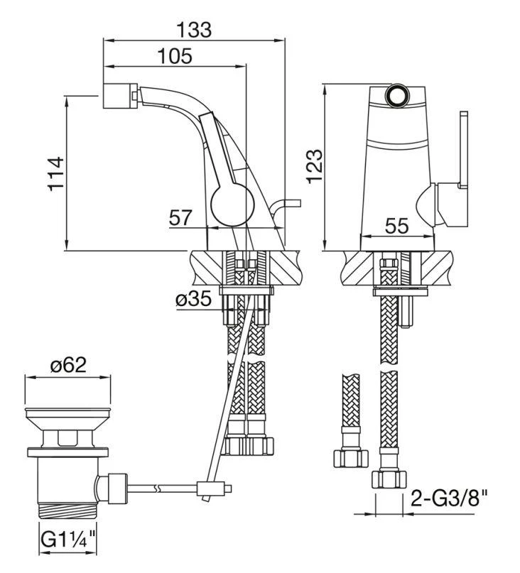Staand bidetkraan met waste