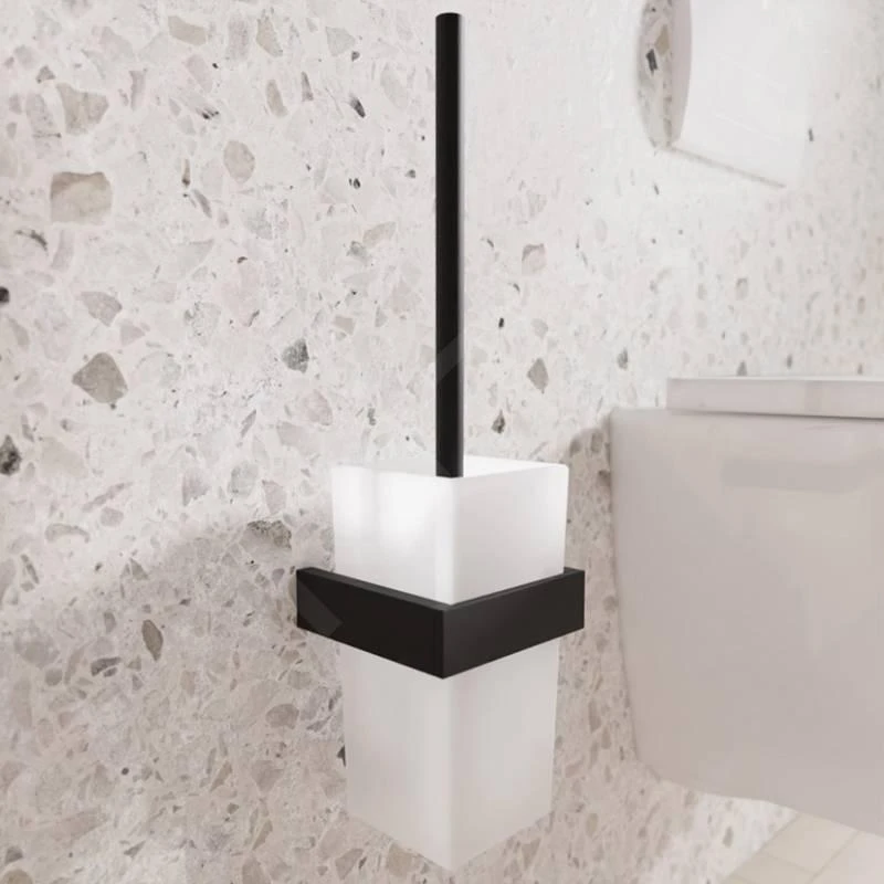 Toiletborstel, mat zwart, wit glas