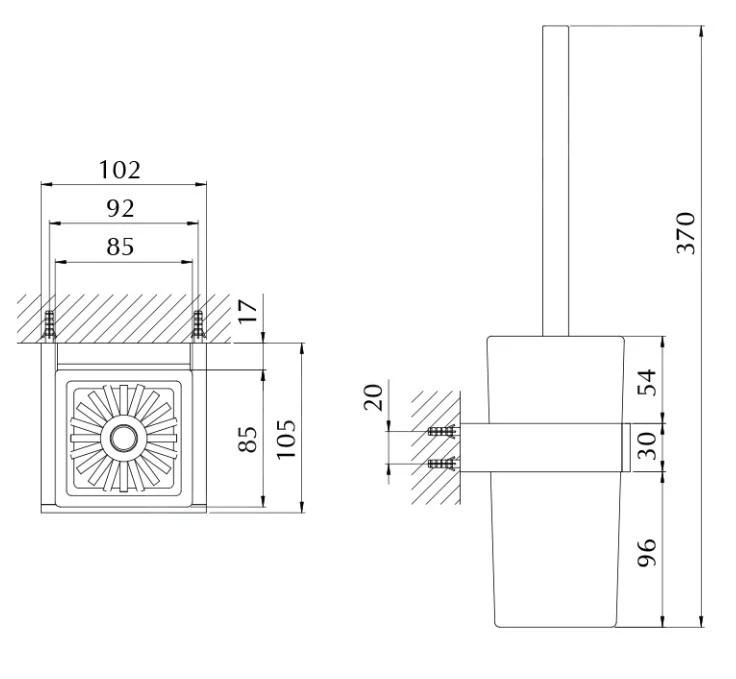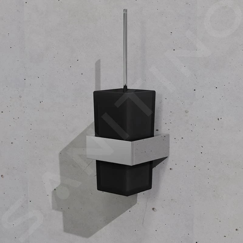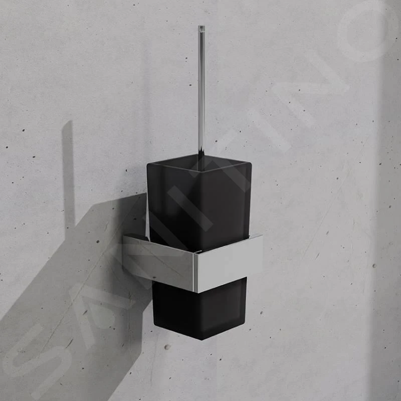 Toiletborstel, chroom, zwart glas