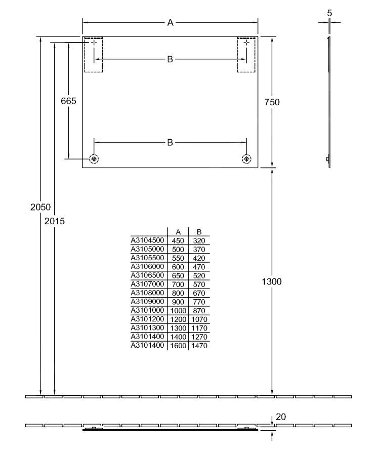 - afmetingen: 450 x 750 x 20 mm