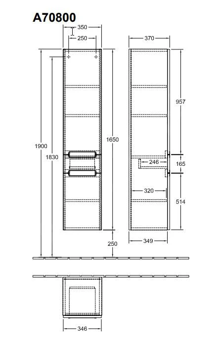 - afmetingen kast: 350 x 1650 x 370 mm (bxhxd)